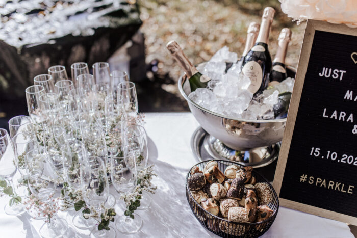 Unser Sparkle Bike ist ein umgebautes Holland – Lastenrad. Auf die Idee sind wir gekommen, weil wir immer wieder Sektempfänge erlebt haben, die nicht ganz so elegant waren. Meistens ist ja jemand von den Freunden und der Familie dafür zuständig, schnell nach der Trauung zum Auto zu flitzen um den kleinen Tisch zu holen, Decke drüber werfen, Gläser raus und Fertig. Meistens stehen rund um den Tisch allerhand Sachen – von den Flaschen über den Gläsern und Servietten.